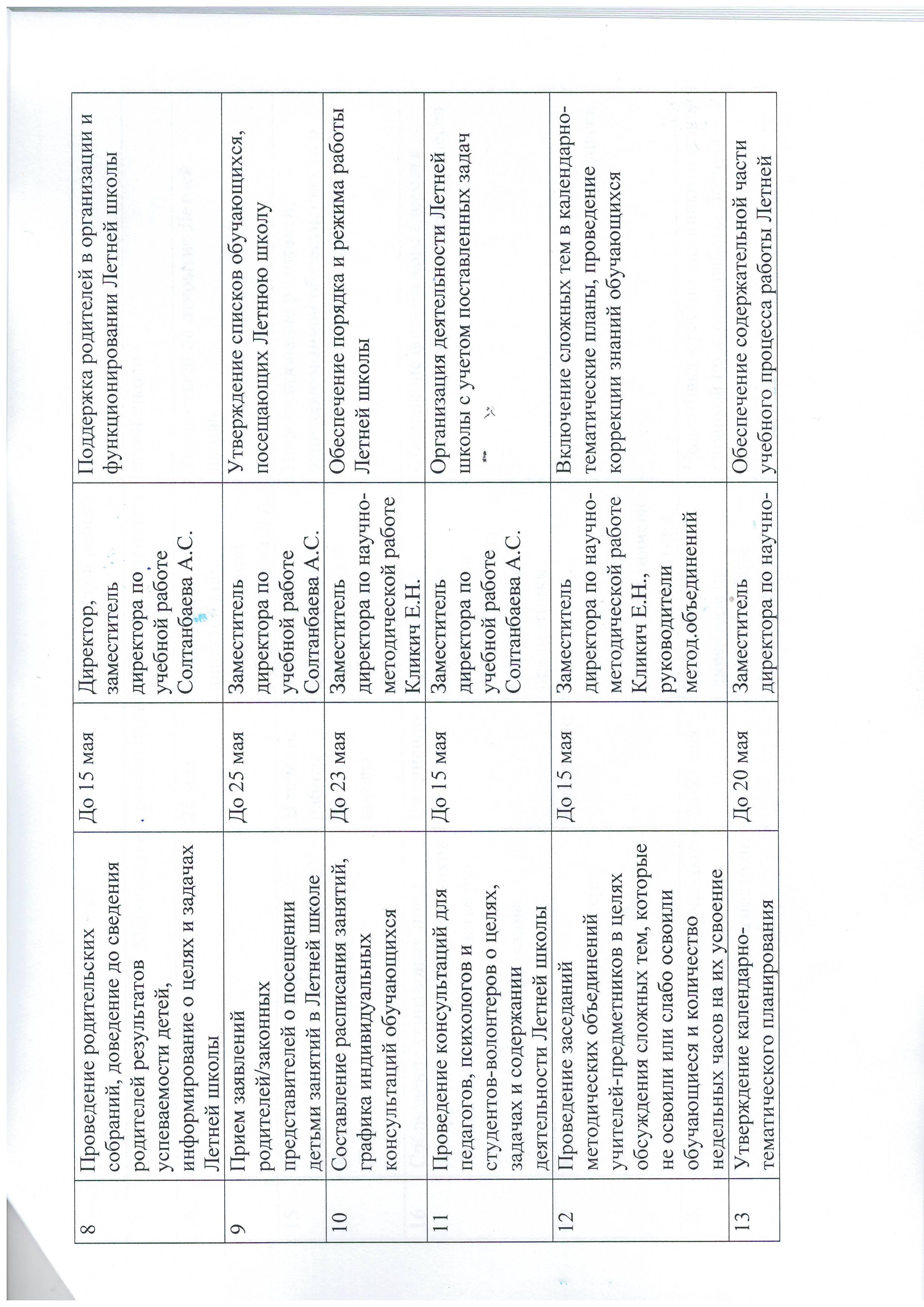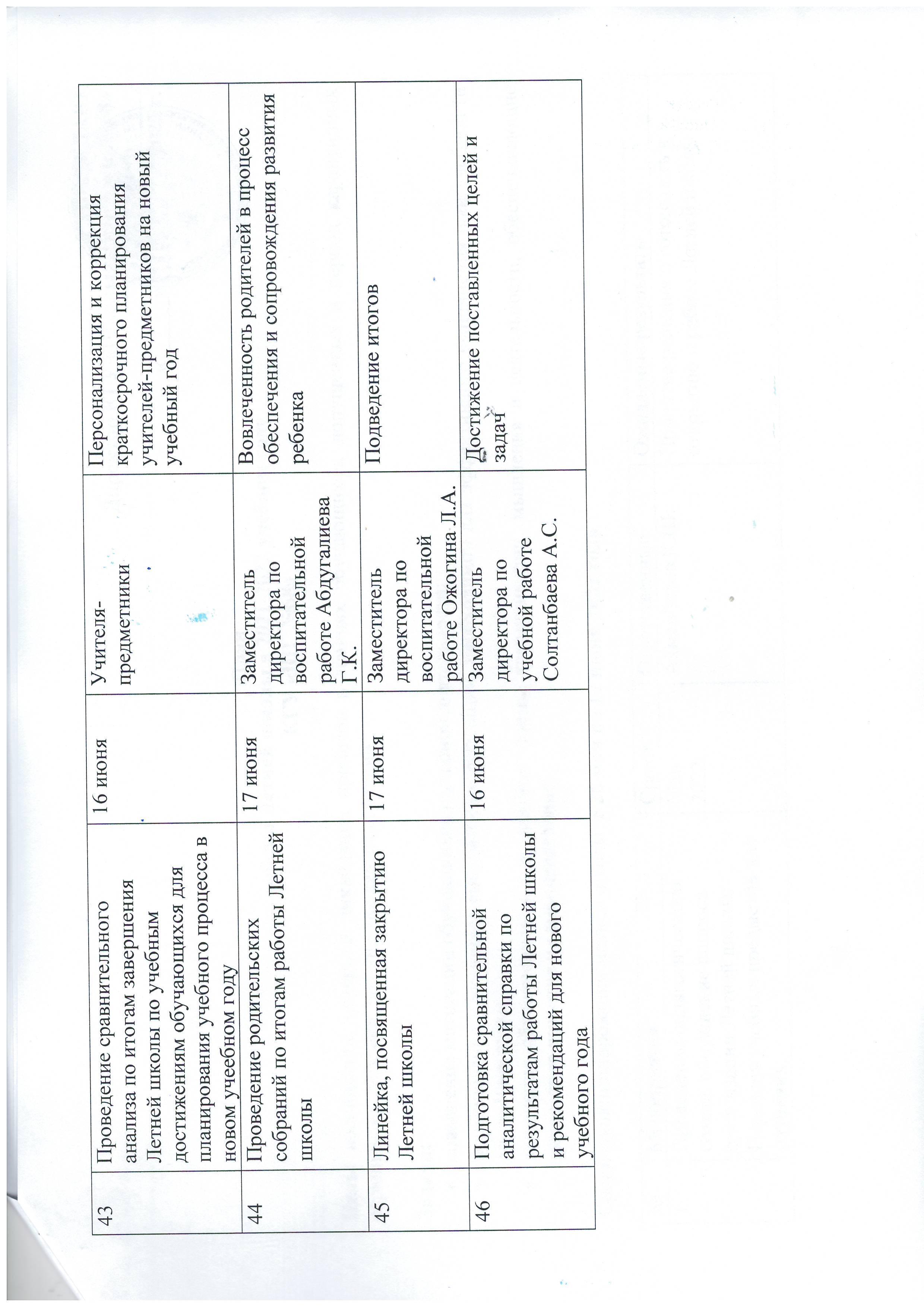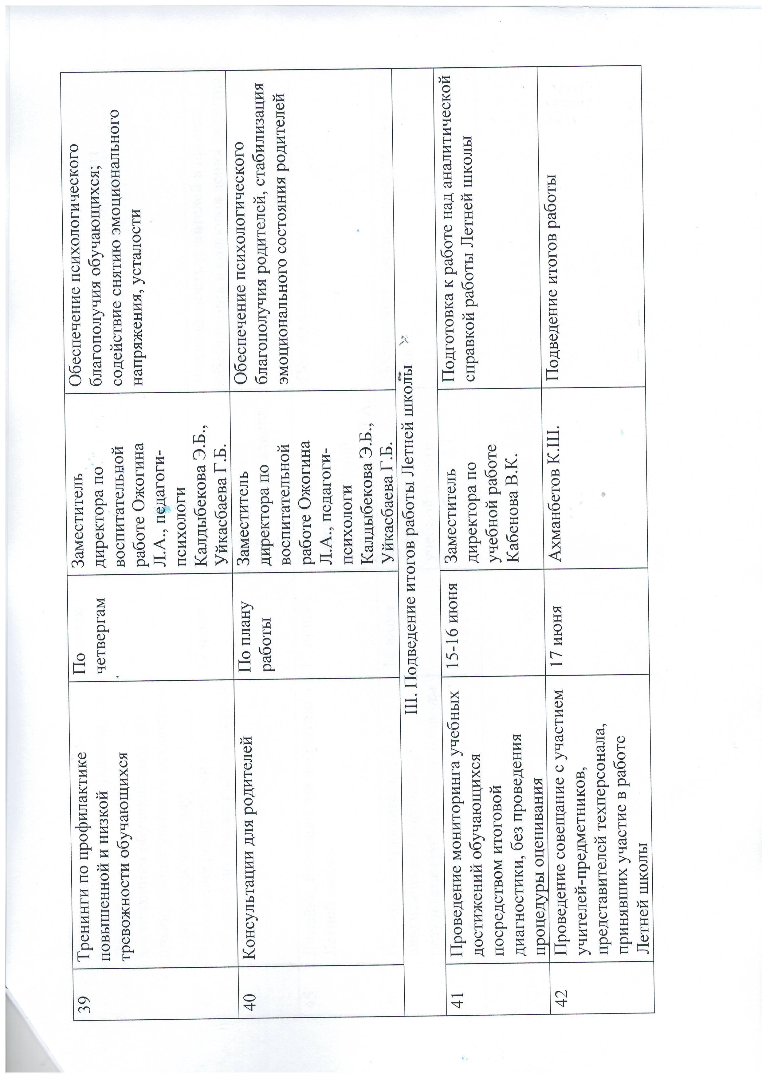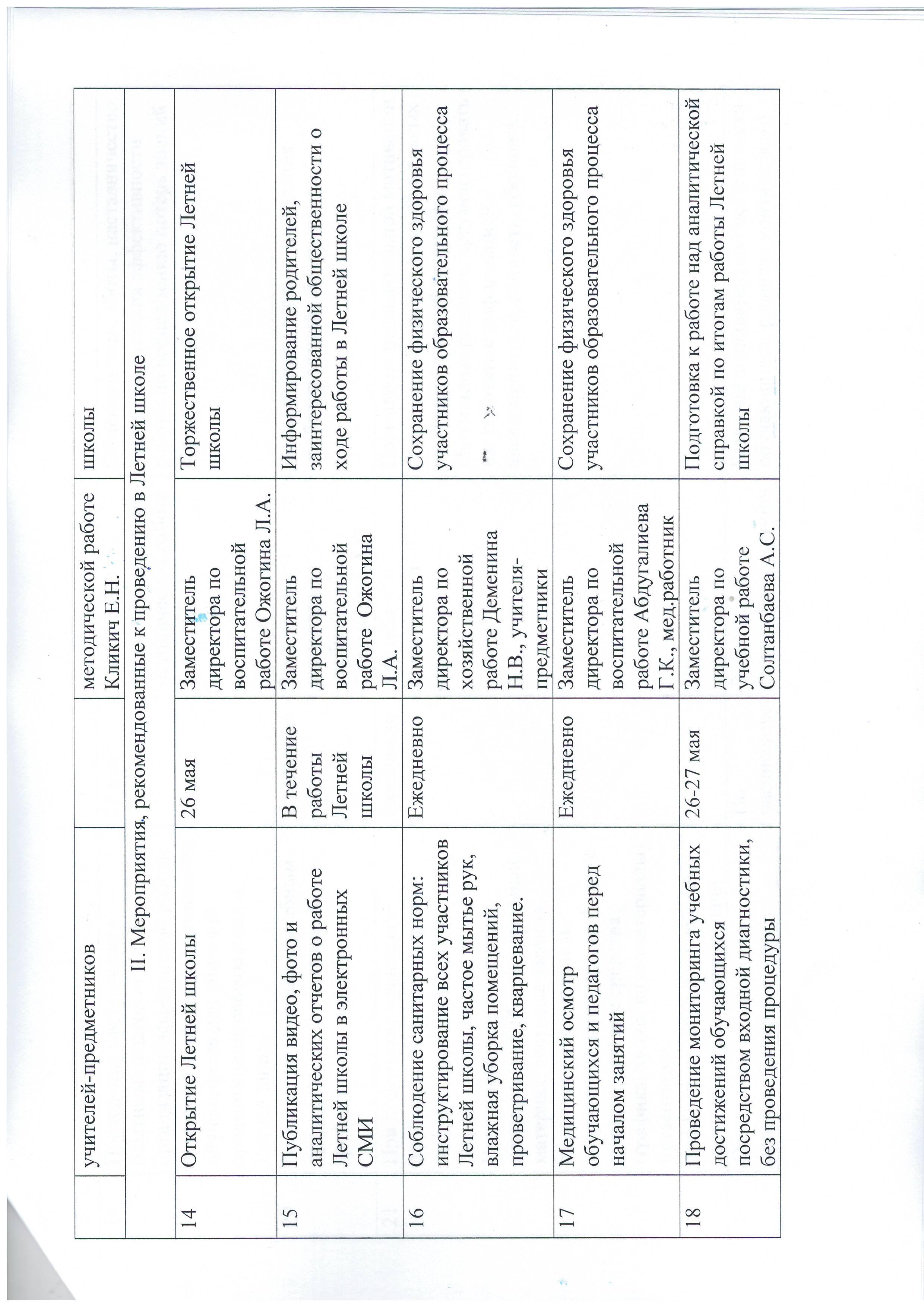 » План работы Летней школы