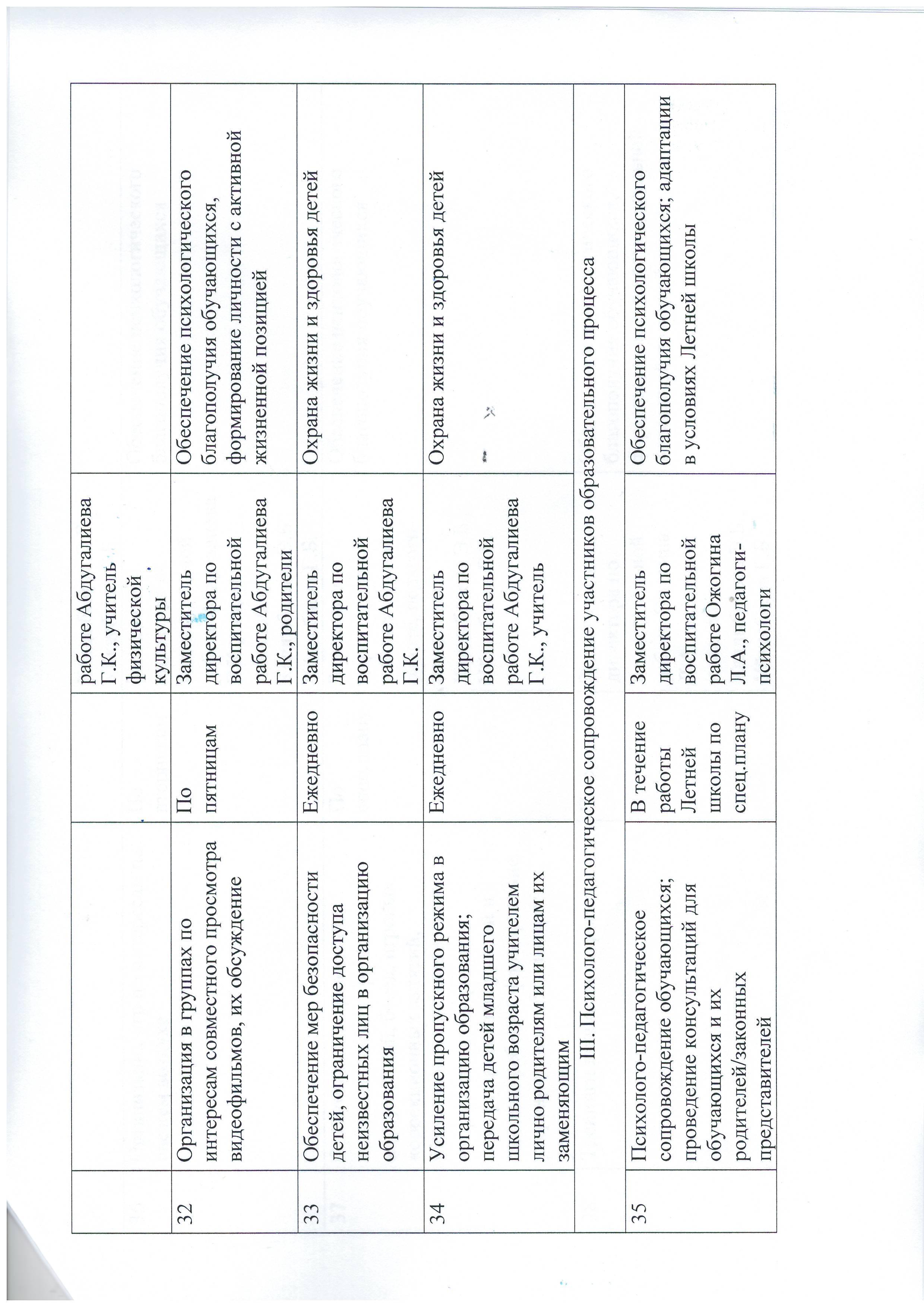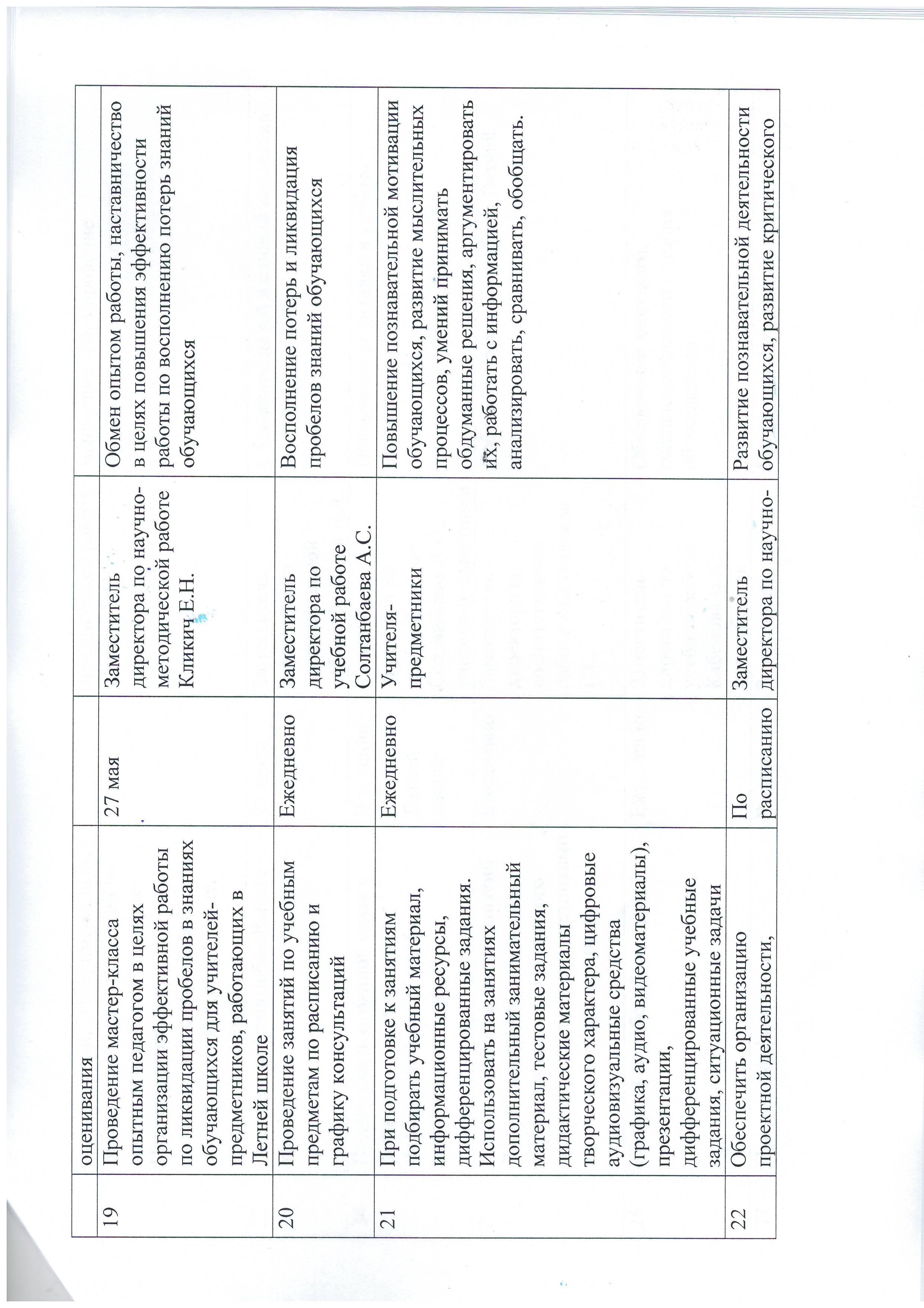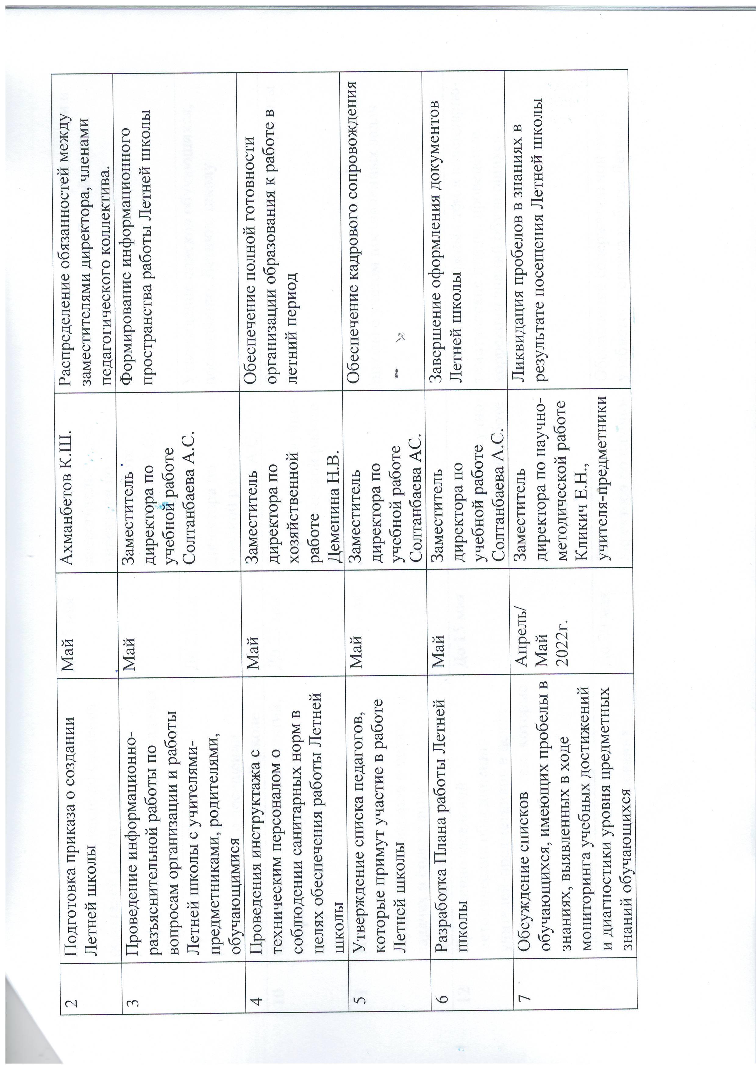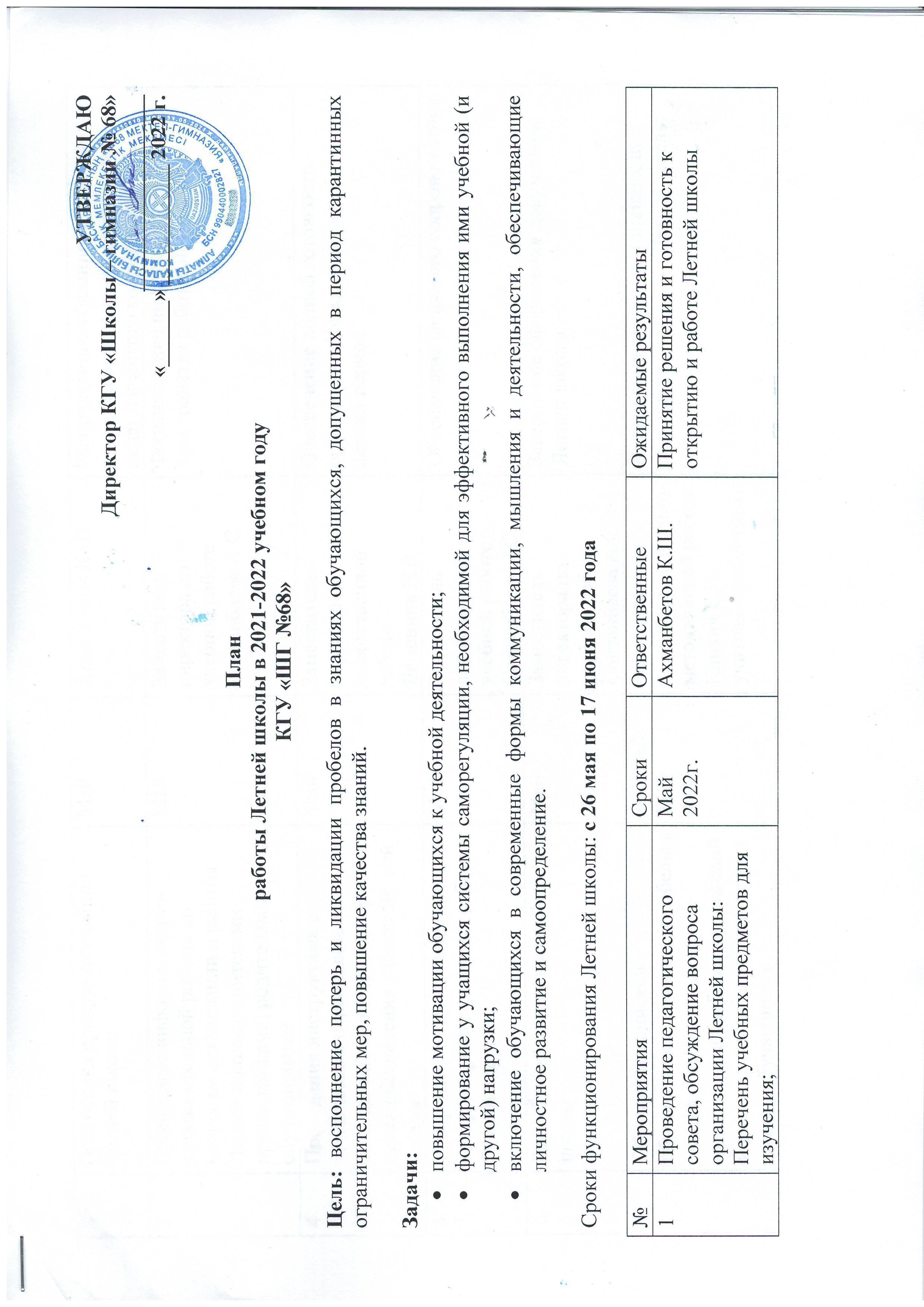» План работы Летней школы