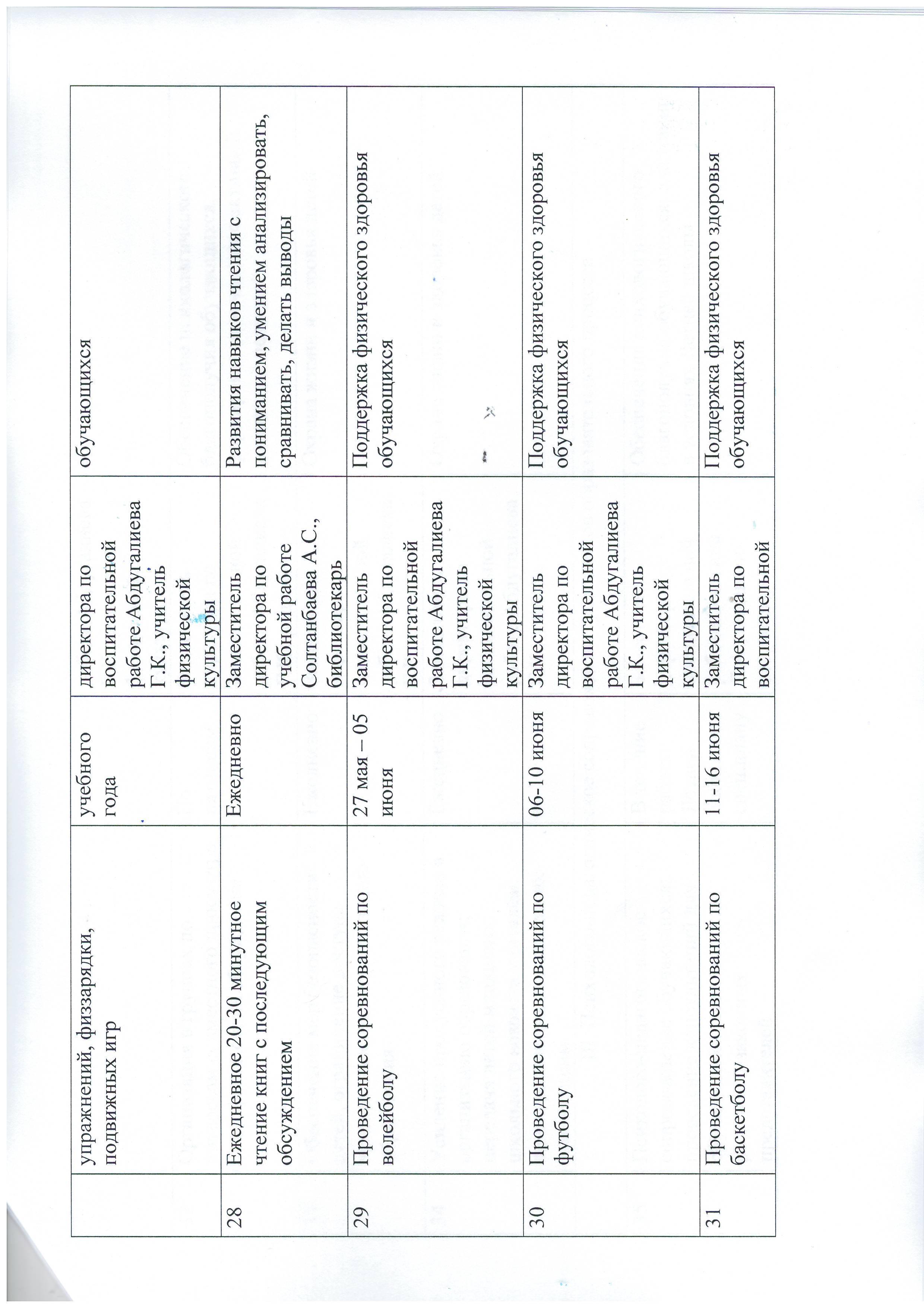 План работы летней школы