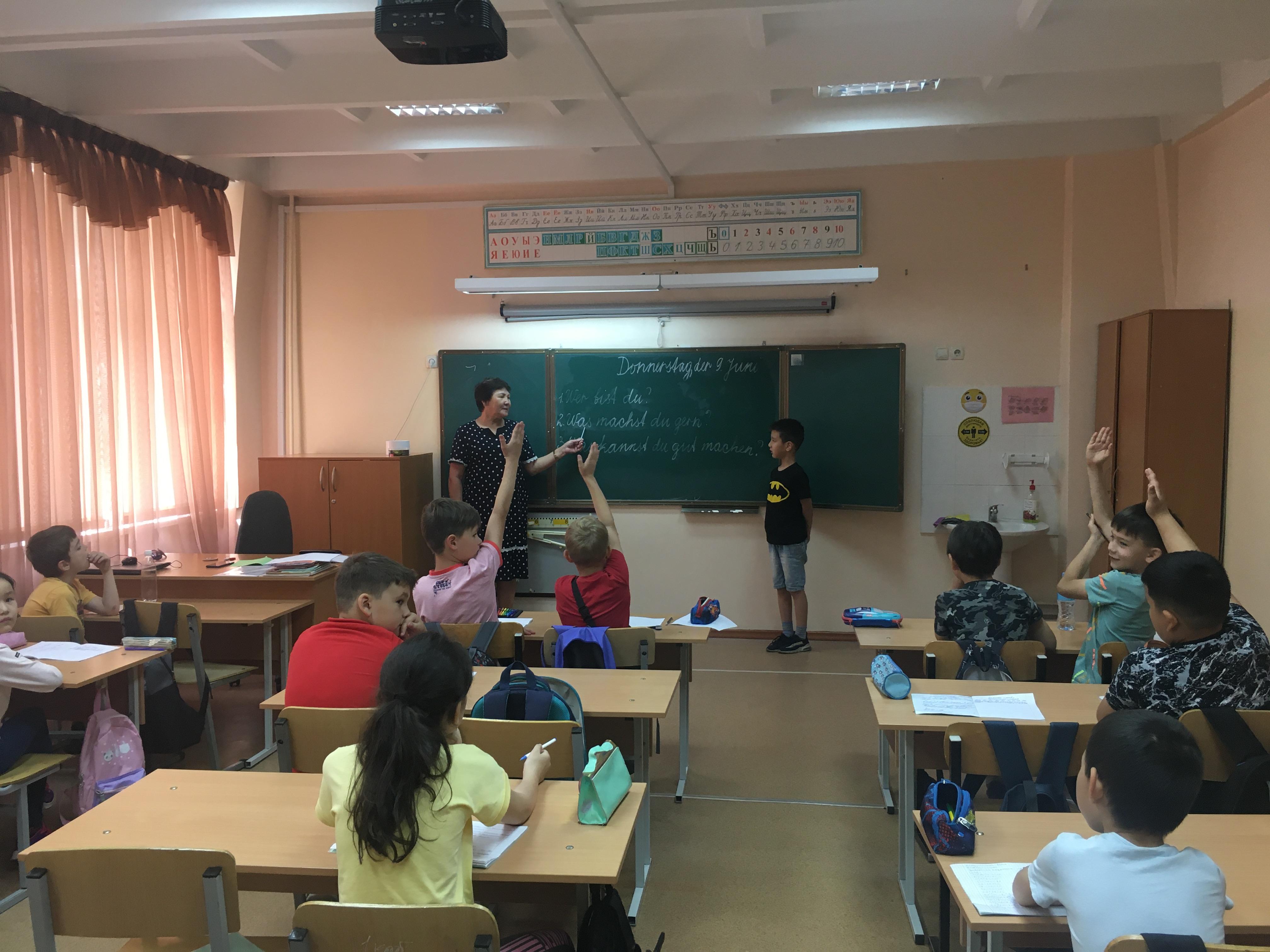 В летней школе наши учителя немецкого отделения ведут занятия для детей с 1 класса. Занятия в немецком отделении проводятся очень интересно и познавательно! Кроме того, ежедневно с 9 -12 часов 8 классы готовятся к экзамену В1.