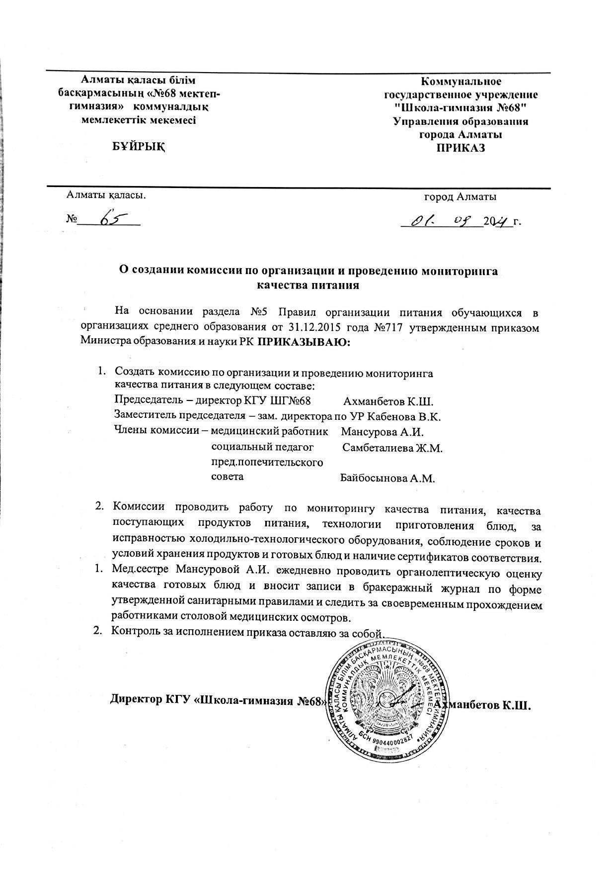 09 қазан 2021 0 1 2 3 4 5 Приказ о создании комиссии по организации и проведению мониторинга качества питания
