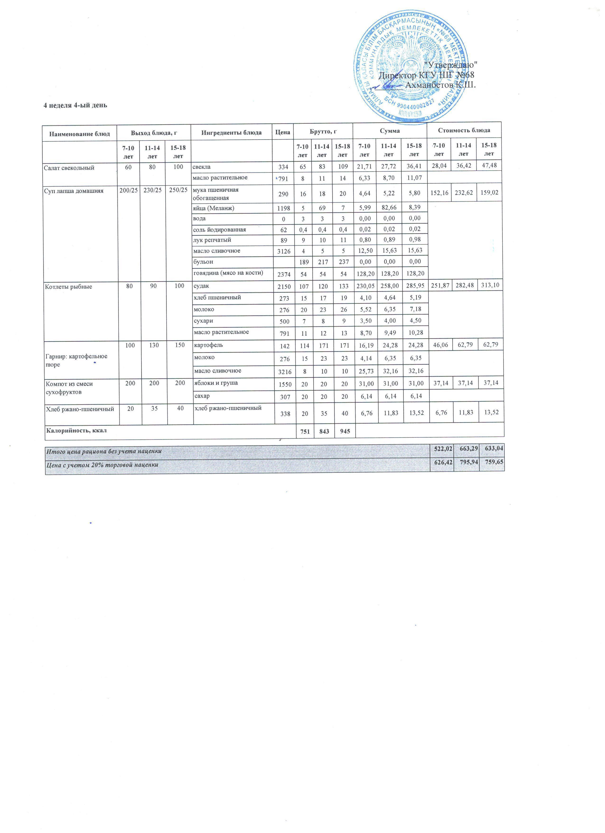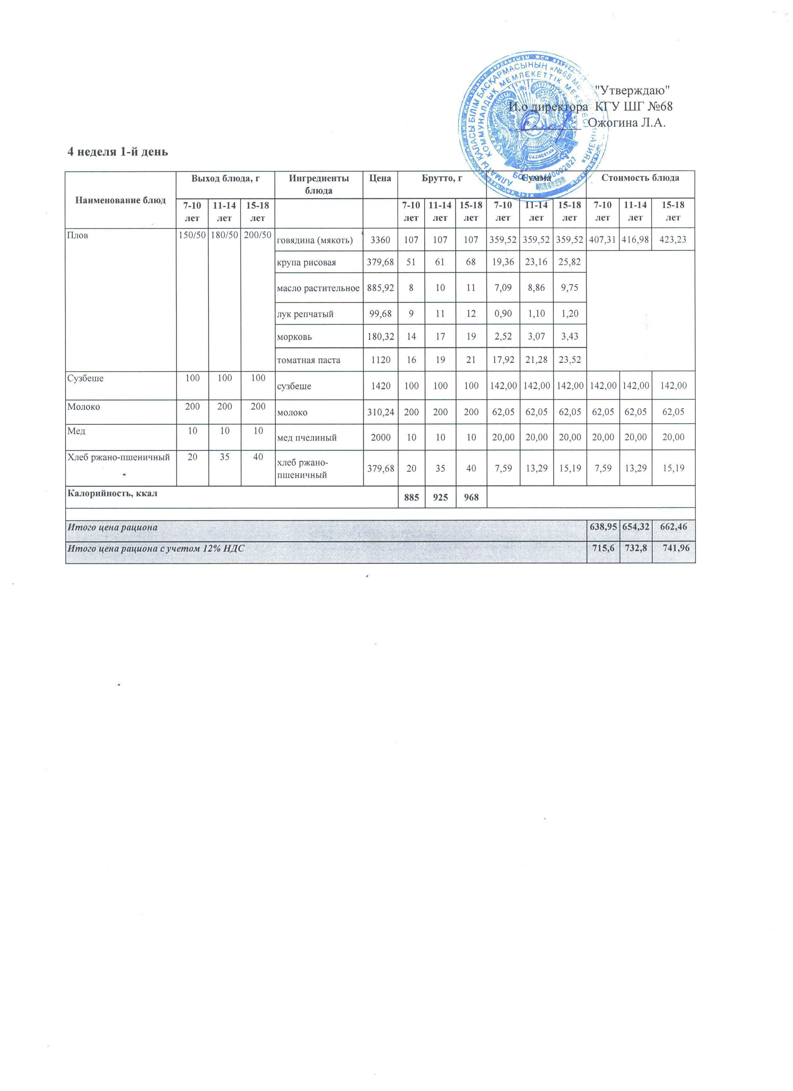 План мероприятий по организации горячего питания обучающихся КГУ ШГ 68 на 2021-2022 учебный год