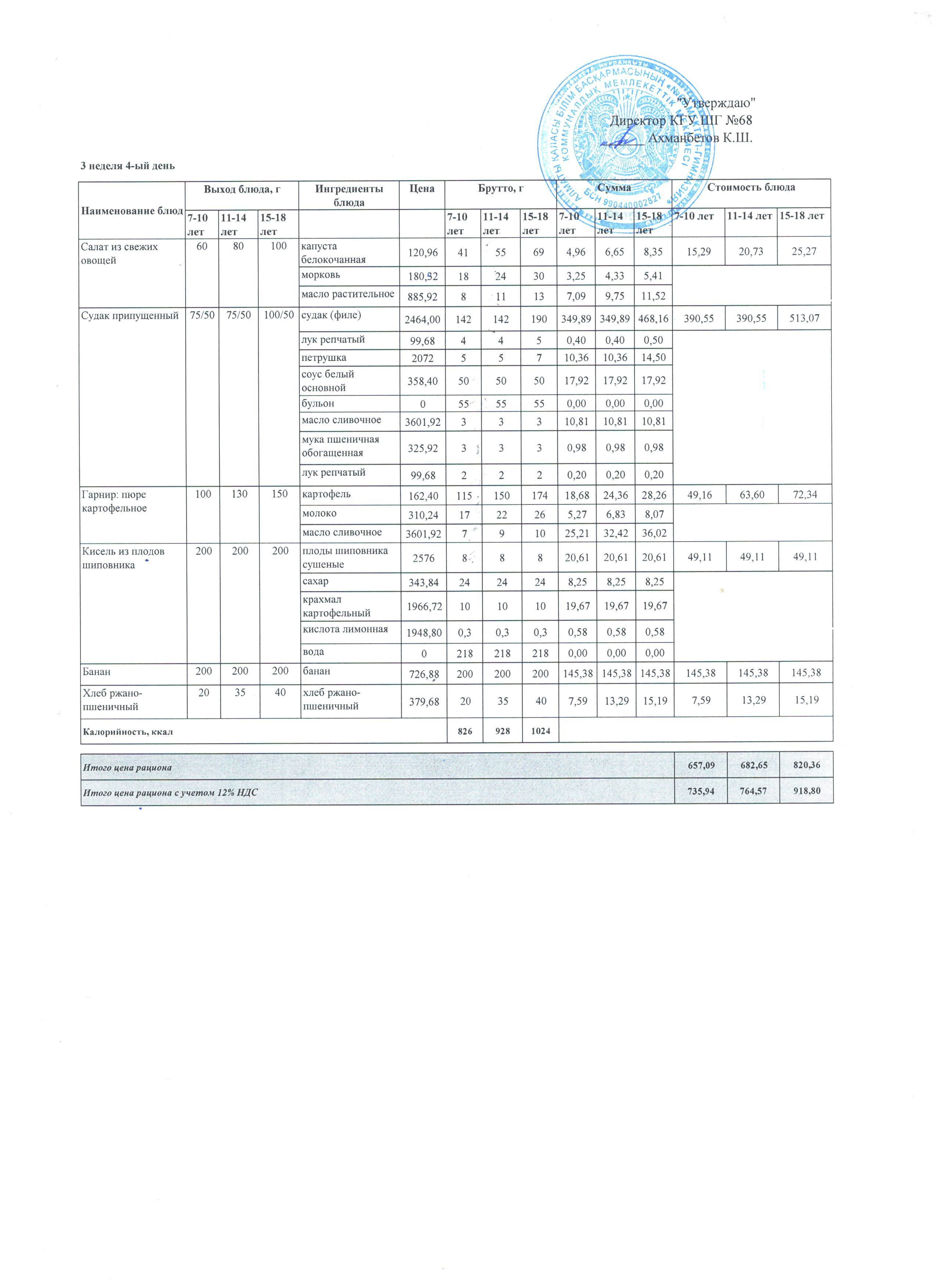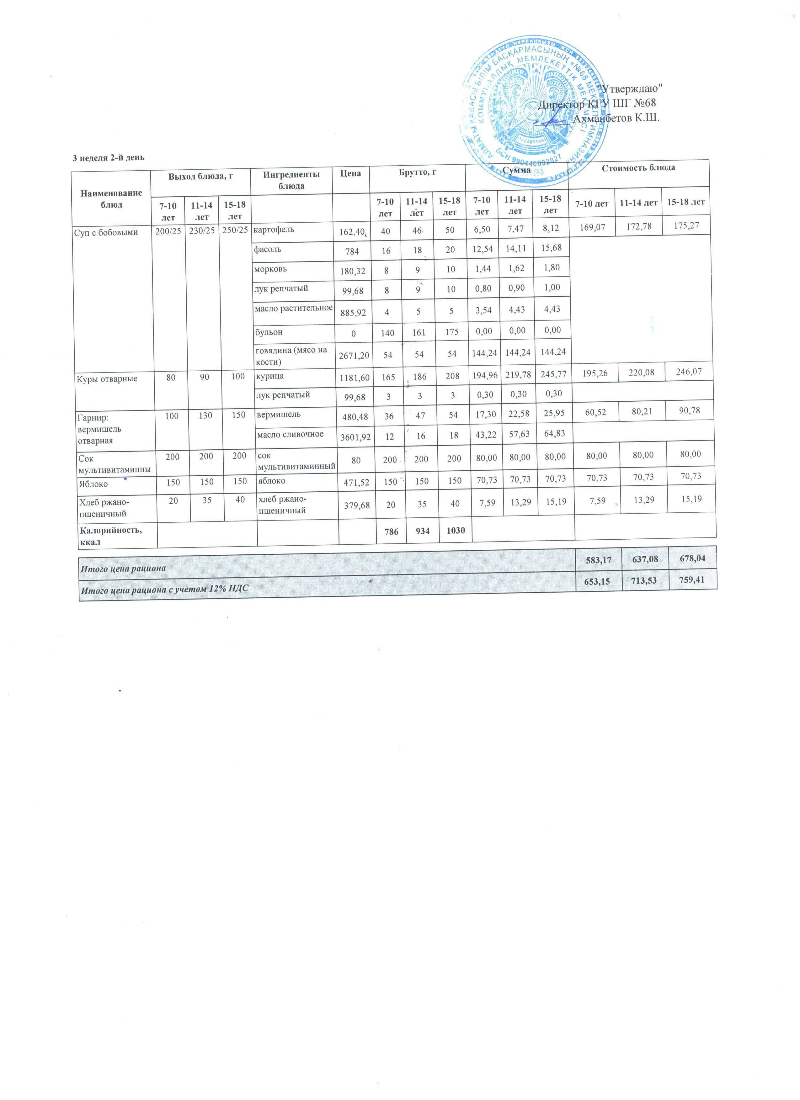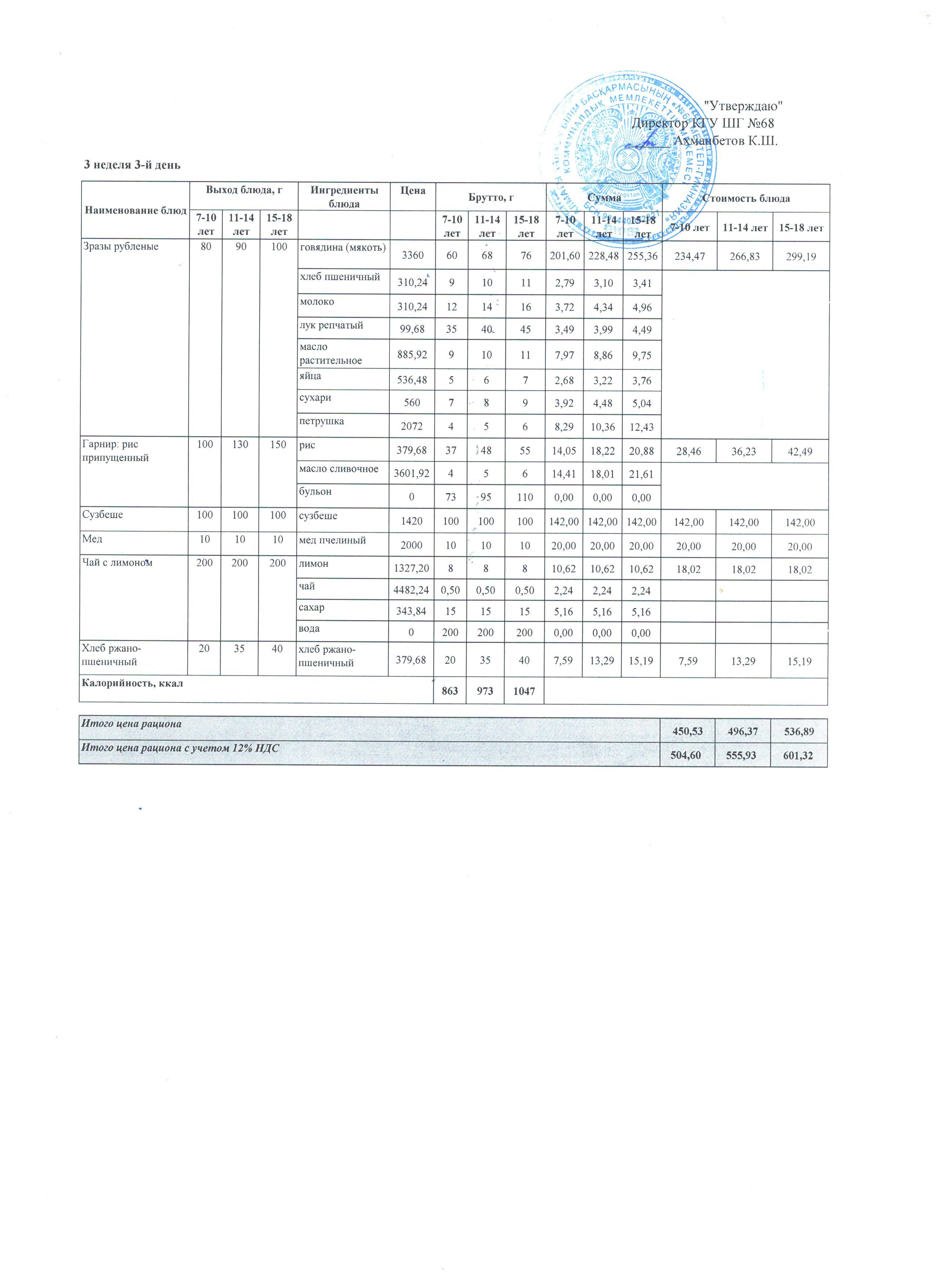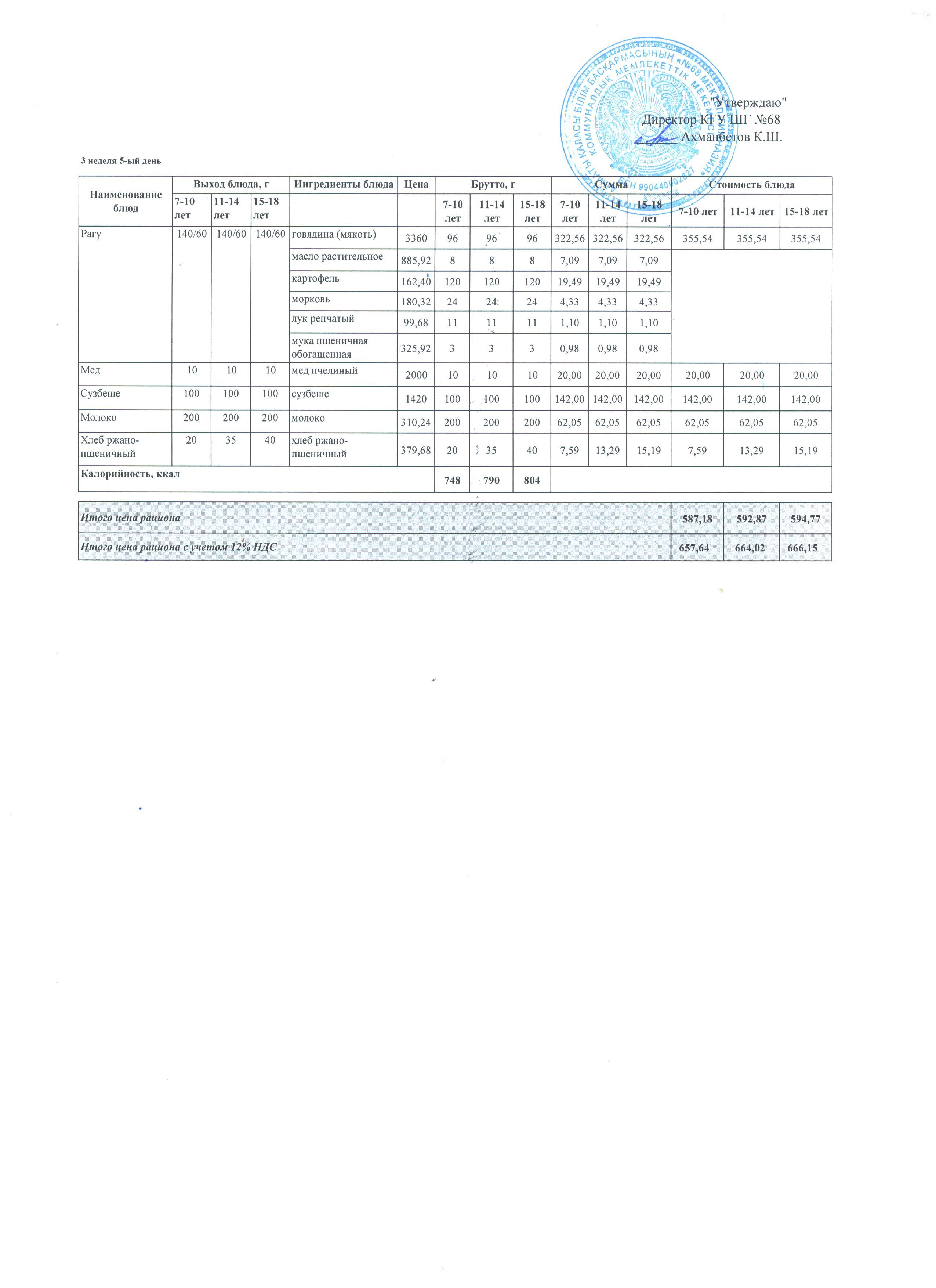 Перспективное меню блюд горячего питания третья неделя 2022 год