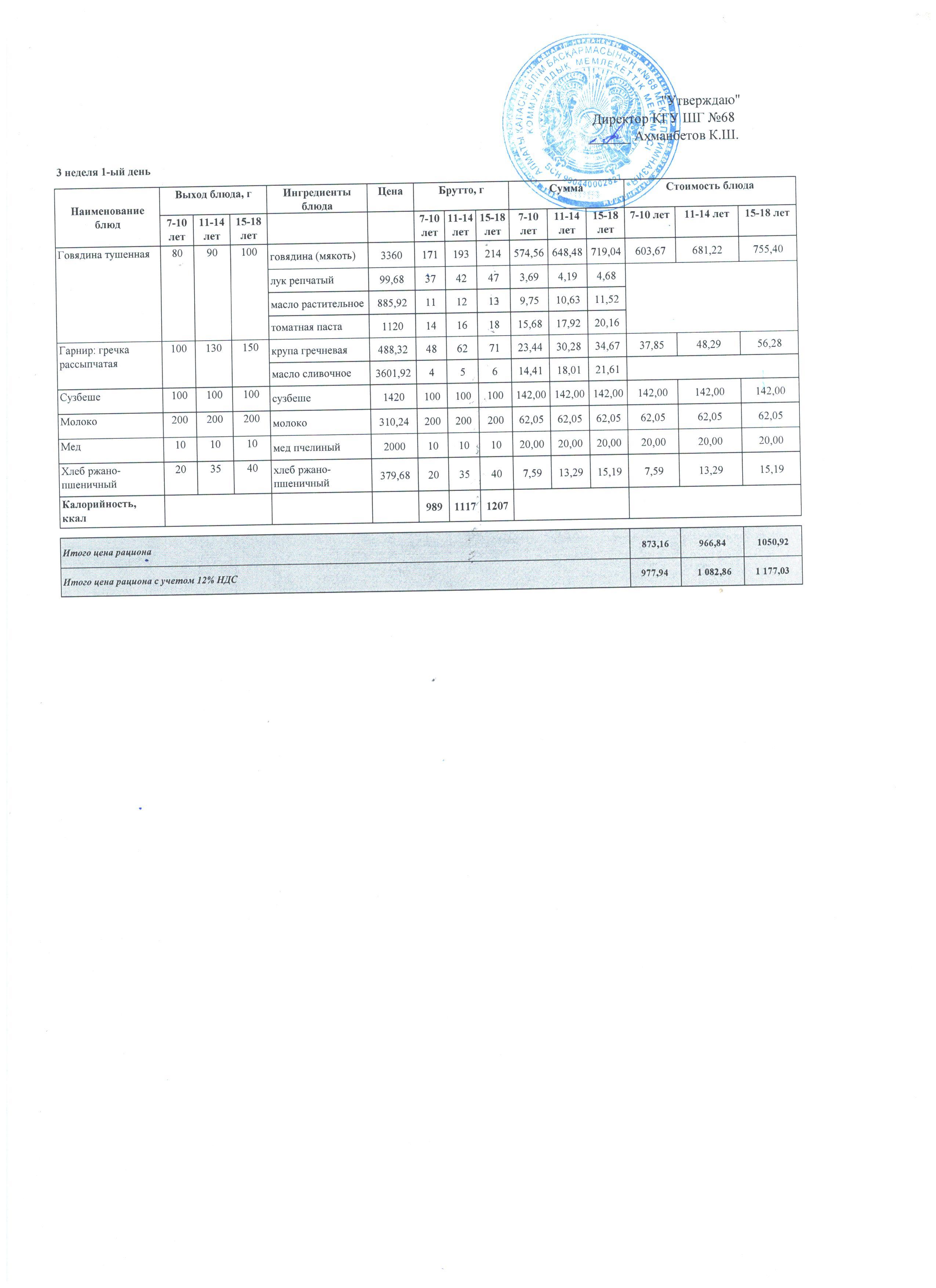 Перспективное меню блюд горячего питания первая неделя 2022 год