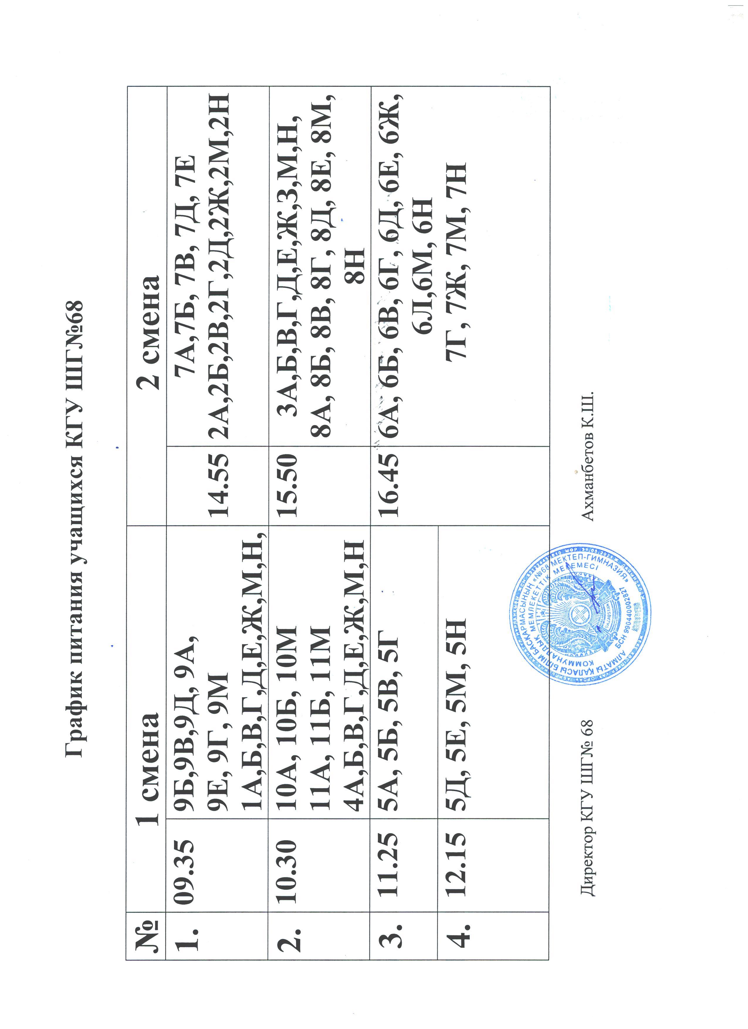 График питания учащихся КГУ ШГ 68