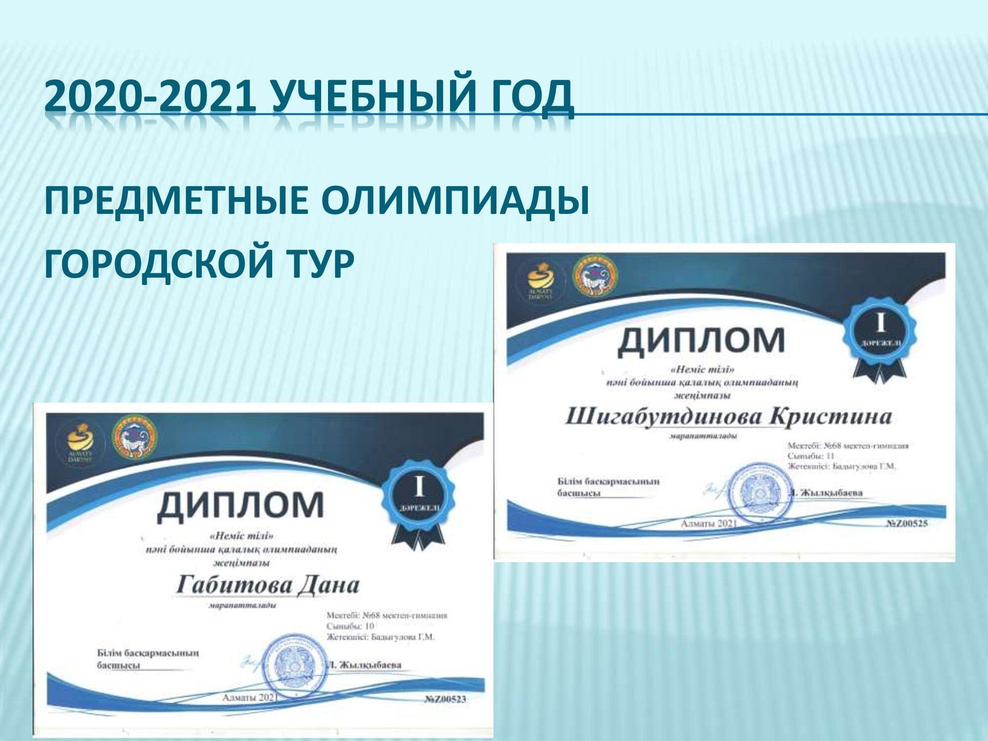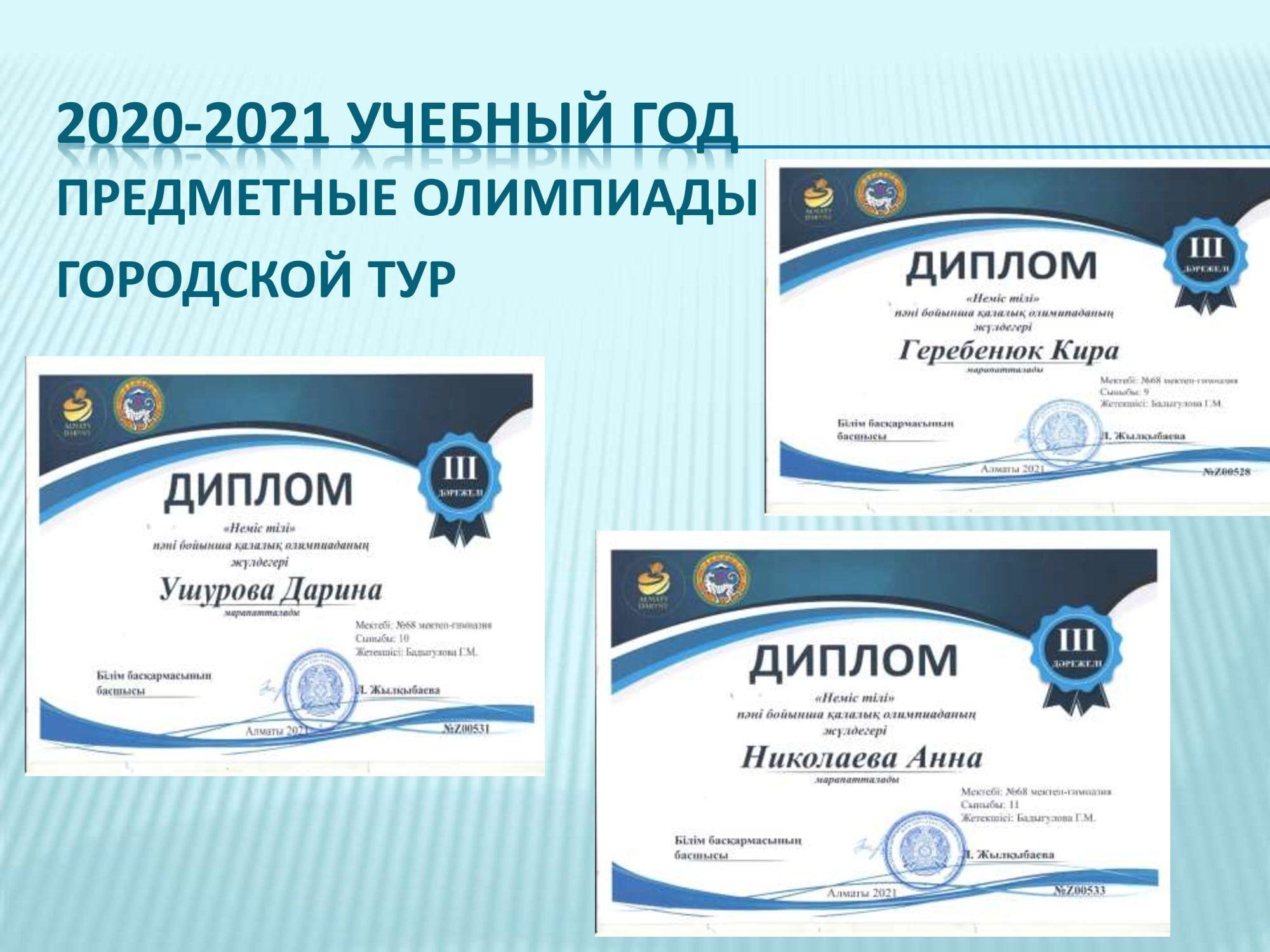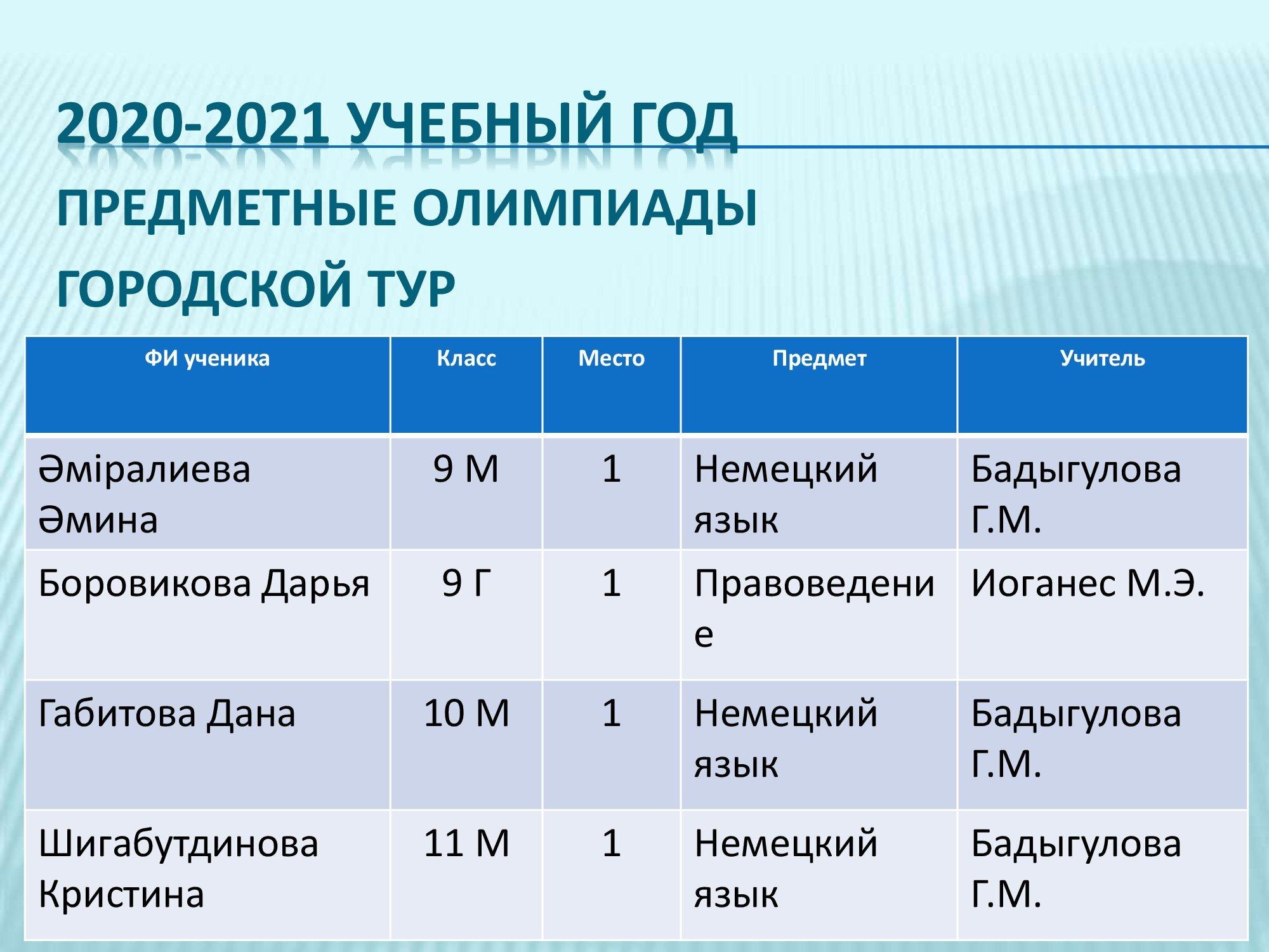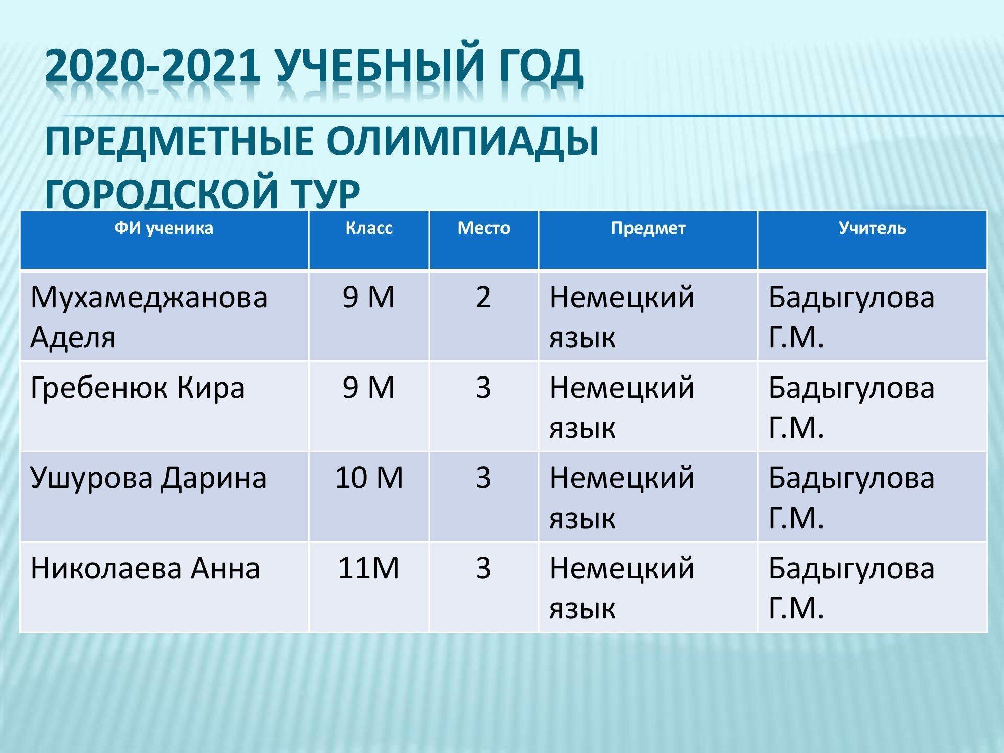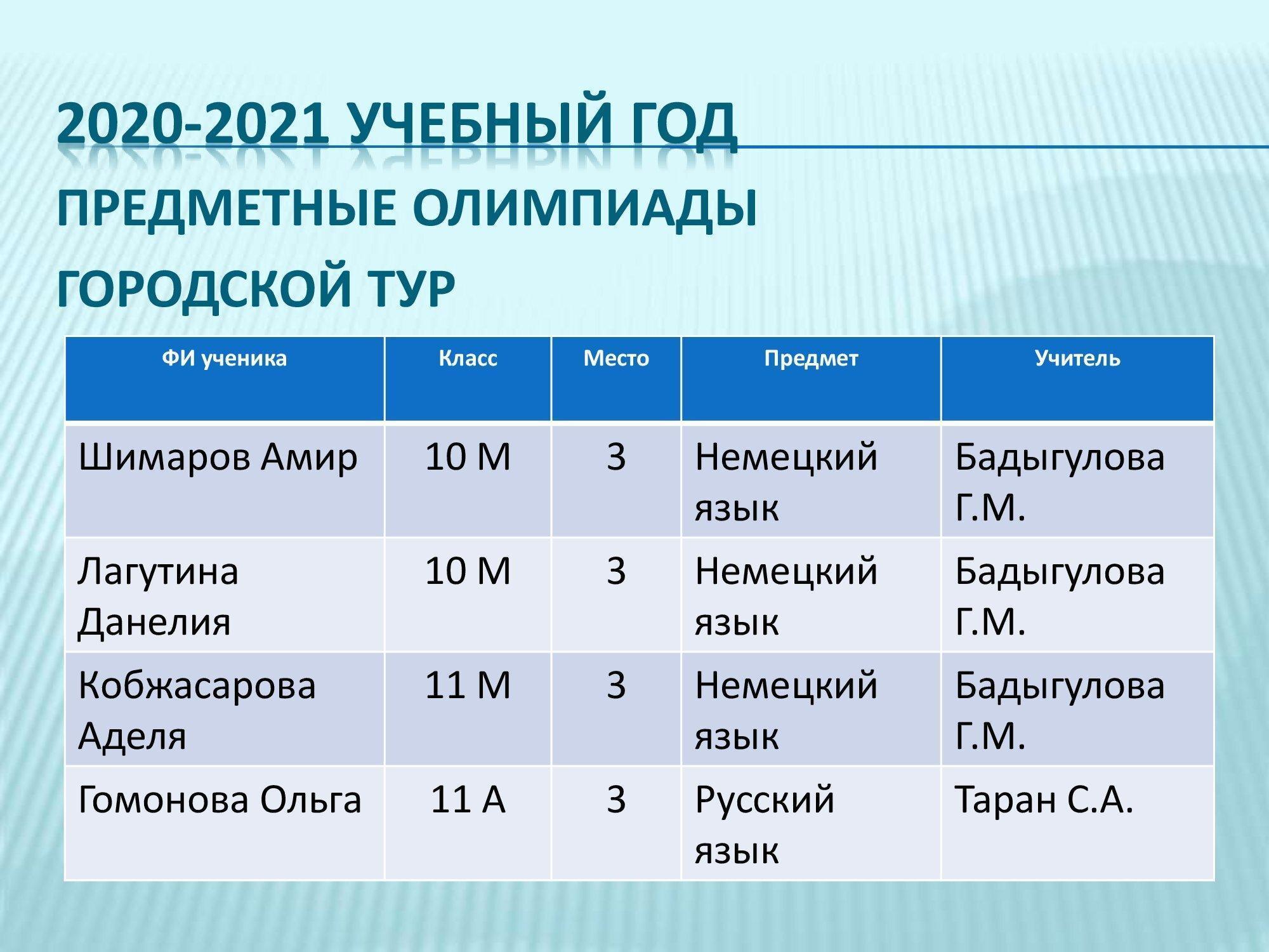 Предметные олимпиады городской тур 2020-2021гг